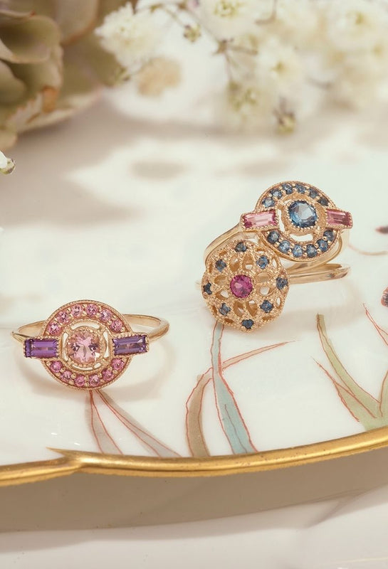 Ces pièces signatures sont des créations exclusives, fruits de la rencontre du vermeil et de pierres semi-précieuses. Créations intemporelles et audacieuses qui mêlent habilement la modernité à des inspirations rétro, elles font rayonner les femmes au quotidien et dans tous les moments importants de leur vie.