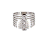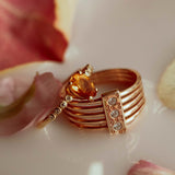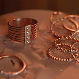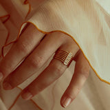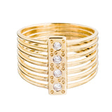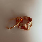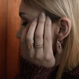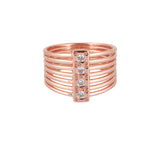 Bague en vermeil or 18 carats jaune ou rose, ou en argent rhodié composée de plusieurs anneaux et de quatre zircons sertis clos. Cette bague se porte seule pour un look moderne et contemporain.