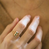 Avec ses lignes modernes et sa monture architecturale, notre bague en vermeil Ambra est sans doute celle qui est la plus inspirée par le style Art Déco. Elle saura vous charmer avec son duo de pierres fines à l’éclat incomparable, décliné dans des combinaisons colorées tout en contraste.