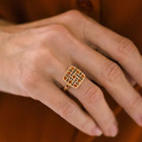 Inspirée par l’audace des créations Art Déco, la bague Montella est une petite merveille aux accents rétro chic. Son motif à l’effet tissé n’est pas sans rappeler le tweed bicolore qui a fait la renommée d’une célèbre maison de haute couture française… mais il s’agit bien d’une création ANÄU Paris !