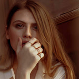Bague en vermeil or 18 carats jaune ou en argent rhodié en forme d'étoile ornées de petits zircons. Idéale à porter seule ou en accumulation.
