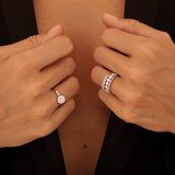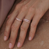 Bague en vermeil or 18 carats jaune ou rose, ou en argent rhodié au style alliance, zircons tailles baguette sertissage mille grain. Cette bague se porte seule ou en accumulation avec des bagues de la collection.