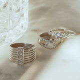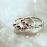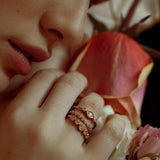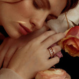 Bague en vermeil or 18 carats jaune ou rose, ou en argent rhodié composée de zircons sertis clos dégressifs. Avec son design très chic, cette bague convient parfaitement pour un look de jour ou en soirée, à porter seule ou en accumulation avec d'autres bagues pour un look tendance.