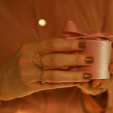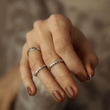 Bague en vermeil or 18 carats jaune ou rose, ou en argent rhodié et son halo de petits zircons sertis clos. L'originalité de la bague Olympie, est le mariage des 8 zircons sur le dessus et des 5 billes pleines de chaque côté, vous permettant de la portée droite ou bien décalée d’un quart de tour.