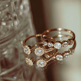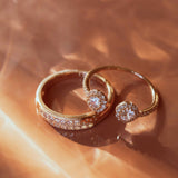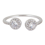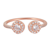 Bague en vermeil or 18 carats jaune ou rose, ou en argent rhodié ouverte avec des zircons sertis de chaque côté.