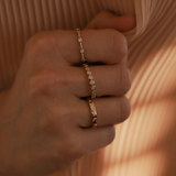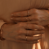 Bague en vermeil or 18 carats jaune ou rose, ou en argent rhodié au style alliance avec sa galaxie de zircons. La bague Siros est une forte inspiration de la bague Paris et Soria. Une constellation de zircons désaxés, qui en fait une bague singulière et originale.